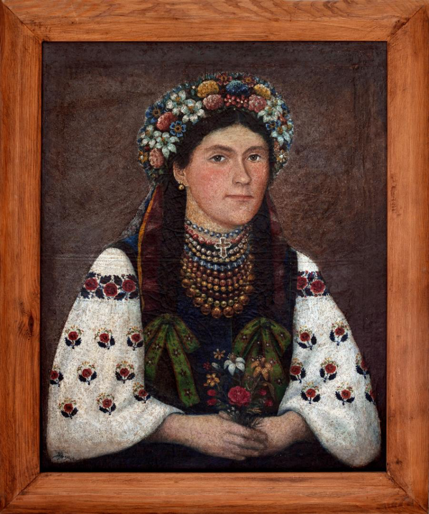 Розглянь «Портрет дівчини у вінку» (початок ХХ століття) Панаса Ярмоленка. Опиши цю дівчину так, як описує своїх персонажок Іван Нечуй-Левицький – із яскравими порівняннями та акцентами. Портрети в Нечуя-Левицького відображають характер героїнь. Поміркуй, який характер дівчини з портрета та які особливості її мовлення?
