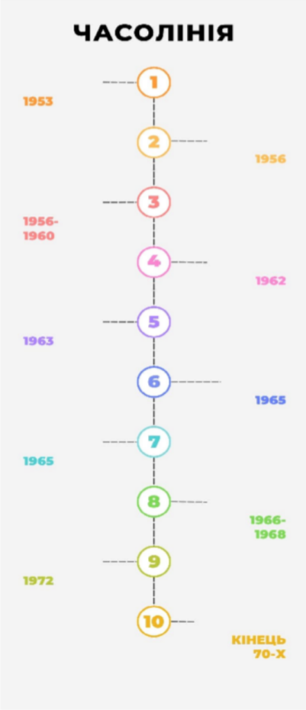 | Часові рамки | сталінська доба | хрущовська “відлига” |