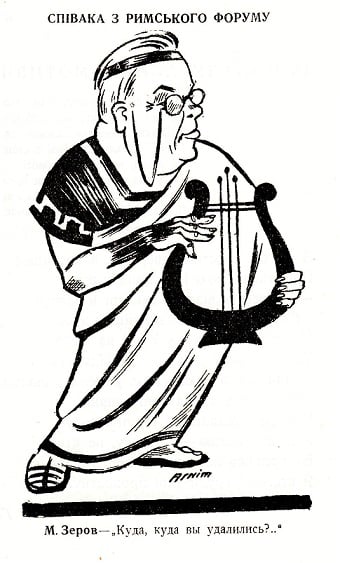 Миколу Зерова колеги по перу називали чільним неокласиком і своїм — не ідеологом — а метром. Тому-то пародисти й карикатуристи в 1920-х роках не знали іншої іпостасі Зерова, крім захисника класичної спадщини — «співака з римського форуму». На цьому й будувалися всі жарти про інакшість, а надто — снобізм неокласиків. Згадай «п’ятірне гроно» й пофантазуй, якими могли б бути карикатури на інших неокласиків. Для натхнення — тримай фото, на якому зображений і наш сьогоднішній автор Павло Филипович.