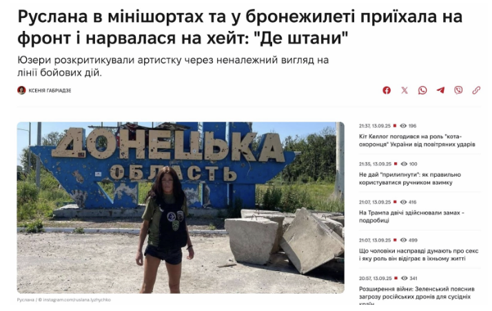 (Джерело зображення: https://tsn.ua/glamur/ruslana-u-bronezhileti-ta-v-minishortah-priyihala-na-front-i-narvalasya-na-heyt-de-shtani-2359165.html )