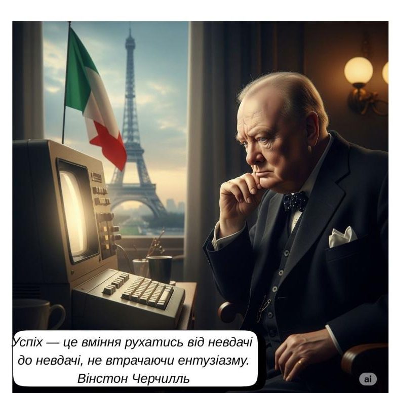 - Вінстон Черчиль жив не у Франції, тому Ейфелевої вежі не могло бути за вікном його кабінету.