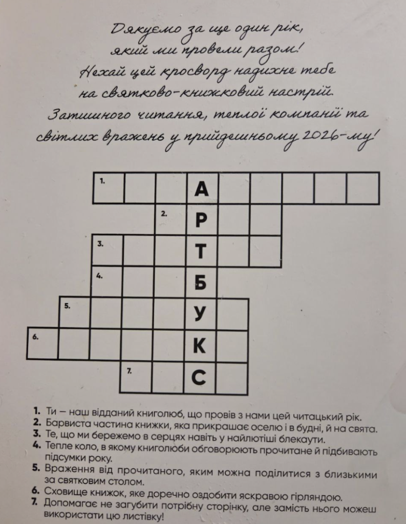1.Розгадай кросворд від видавництва “Artbooks”.