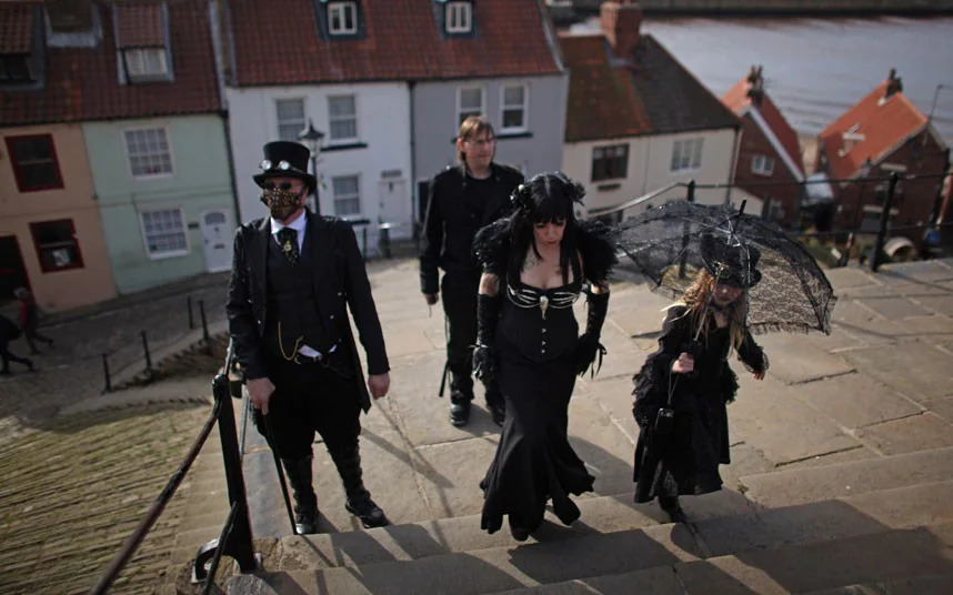- А тепер розбери на елементи образи готів: які з них походять з Вікторіанської епохи, які — від образів вампірів в цілому, і Дракули зокрема, які — з кіберпанку/стімпанку та інших сучасніших культурних явищ?