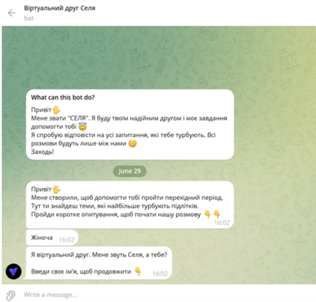 Робота із чат-ботом Селя.