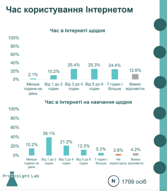 Перегляньте інфографіку від “ProInsight Lab”. Скільки часу українські підлітки щодня проводять в інтернеті? А скільки – для навчання?