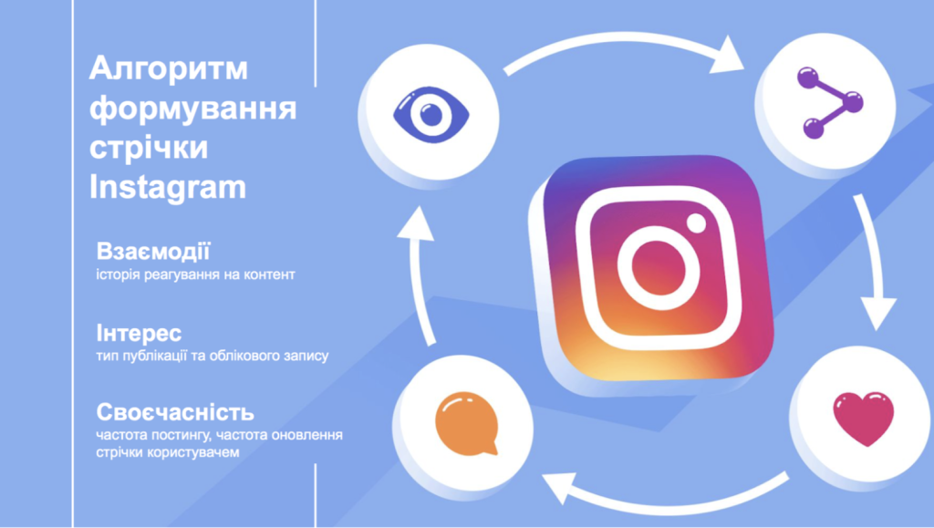 Варіанти відповідей: Фейсбук реагує на пости, які ми пропустили; фейсбук орієнтується на контент, із яким ми взаємодіяли; інстаграм звертає увагу на частоту взаємодії.