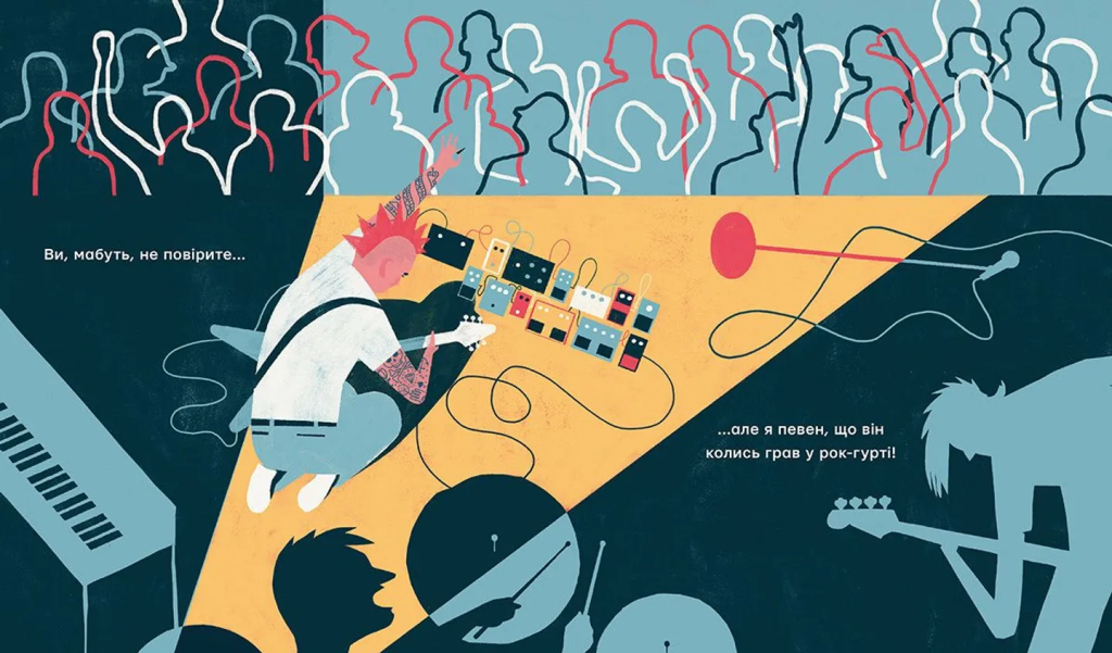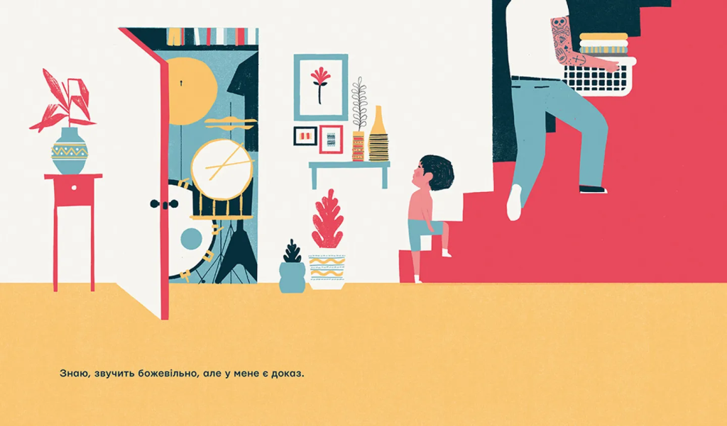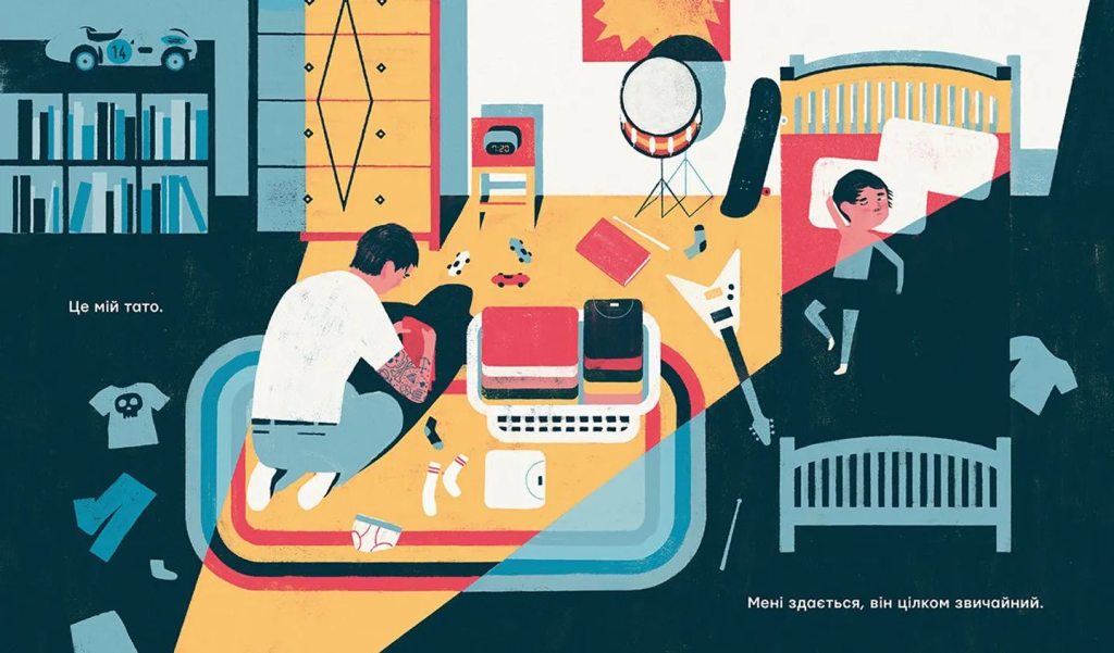 Розглянь кілька розгортів книжки-картинки Неґлі Кіт «Колись мій тато був дуже крутий» Як ти думаєш — про що ця книжка? Яка її ідея?