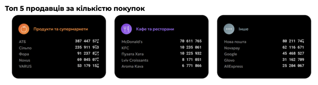 • кількість покупок, здійснених в категорії “продукти та супермаркети” та “книги”;