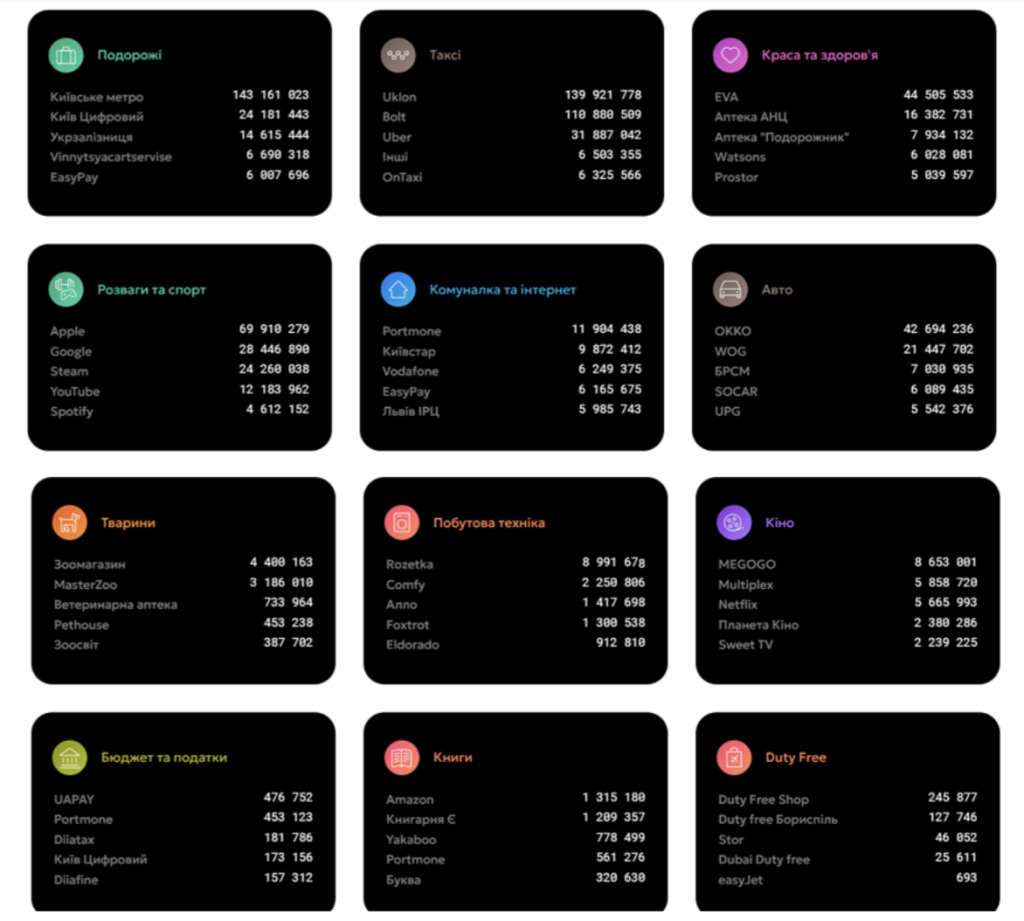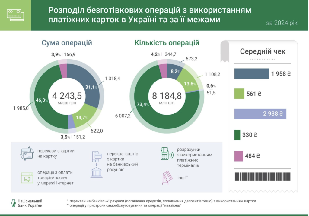 Скористайтеся сайтом Національного банку України, щоб додатково проаналізувати дашборди щодо кількості безготівкових операцій в Україні та за її межами.