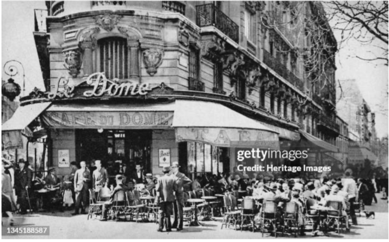 Розглянь світлину з району Парижа. Занурся в атмосферу паризького Монпарнасу 1920-х. Монмартр і Монпарнас як центри мистецького життя: кафе, майстерні, літературні салони. Поміркуй, що на світлині допомагає відчути дух епохи: свободу, експеримент, очікування змін? Яким постає Париж у цій атмосфері? Уяви де тут міг сидіти поет, який пише вірш про любов, втрату й війну?