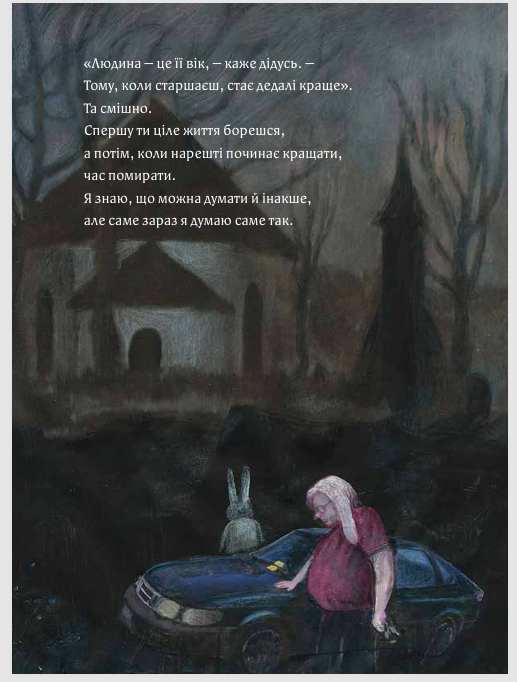 Саме це й сталося з головним героєм книжки. Після розмови з дідусем, який виявився дуже схожим на нього самого, головний герой по-іншому поглянув на світ, свої відчуття, свій страх. Герой ставить собі ключове запитання: “А що як страх не дає мені бути собою?” – і після нього все змінюється, внутрішній неспокій трохи втишується, настає розв’язка.