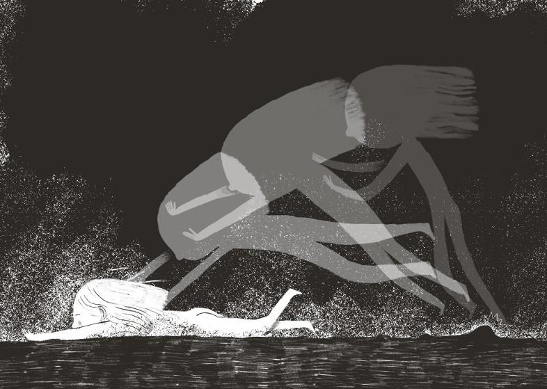 | 3. Бувають дні, коли світ такий страшний, що я не маю сил підвести очі від землі. Що завгодно може статися, щойно я ступлю на підлогу та підійду ввімкнути лампу. Бувають дні, коли я відчуваю, ніби з мого живота стирчить виделка й накручує спагеті з кишок. Верть, верть. |