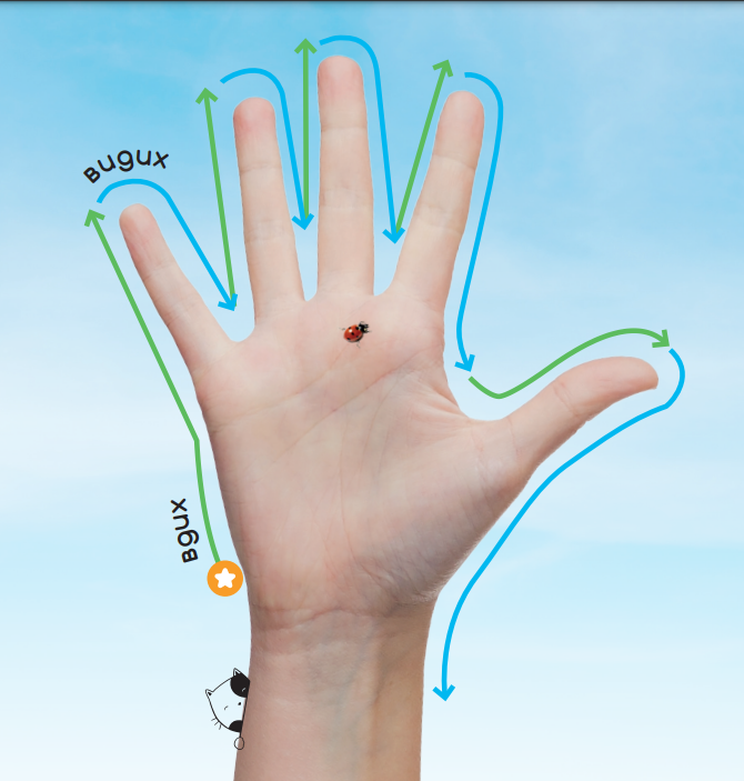 Психологиня Світлана Ройз розробила набір карток для дихальних практик стабілізації. Одна з них – перед тобою. Коли тривожно, можеш спробувати дихати, як показано на малюнку: зелена стрілка – вдих, синя – видих.