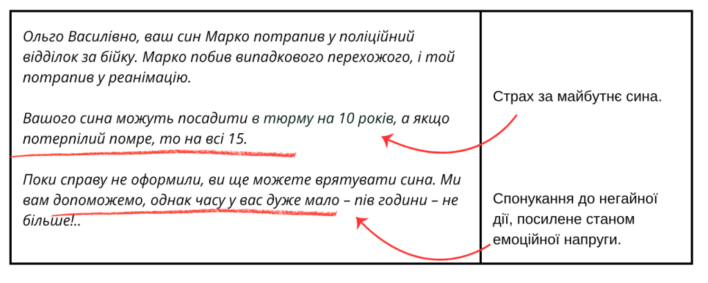 Наші емоції, зрозуміло, впливають на наші вчинки. Це добре знають маніпулятори, тому дуже часто користуються людським страхом, жалем, співчуттям, щоб відпрацювати добре продуману схему.
