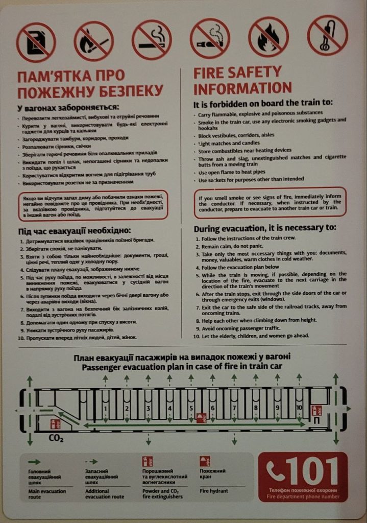 1. Прочитайте пам’ятку про пожежну безпеку у вагоні поїзда.