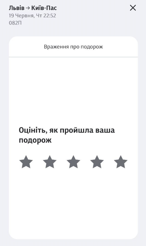 Чи залишаєш ти зворотний зв`язок після користування послугами компанії “Укрзалізниця”? Пригадай останню подорож і заповни форму зворотного зв`язку після подорожі.