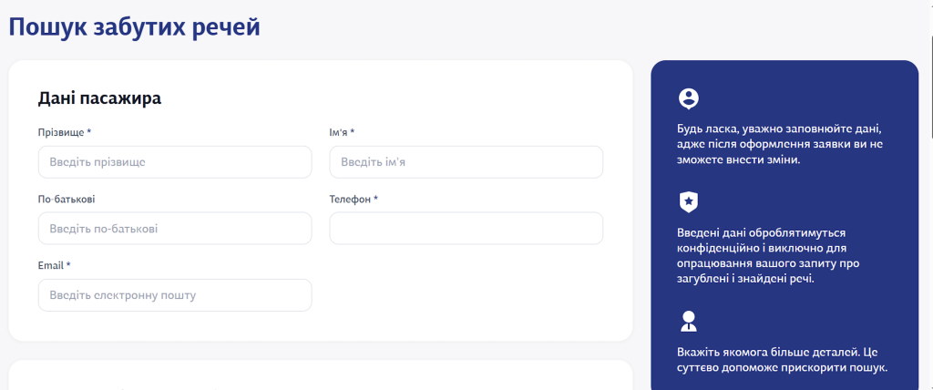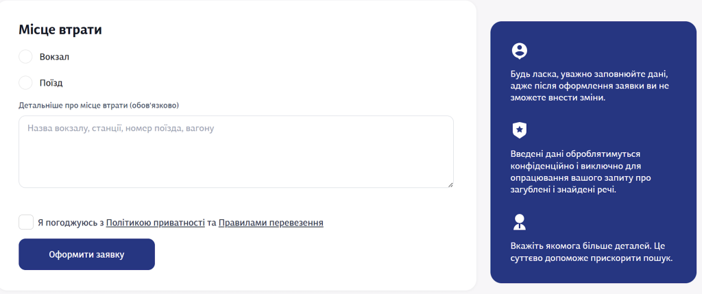 1. З`ясуйте, де на сайті “Укрзалізниця” можна подати заявку у випадку, якщо загубили речі. Заповни таку заявку на окремих аркушах.