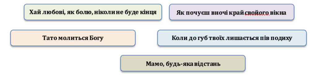 Прочитай наведені назви деяких віршів, повʼязаних із темою «Кохання та стосунки».