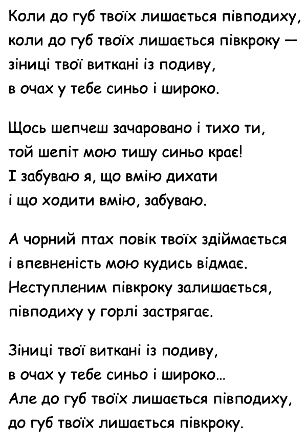 Г. Чубай «Коли до губ твоїх лишається пів подиху…»;
