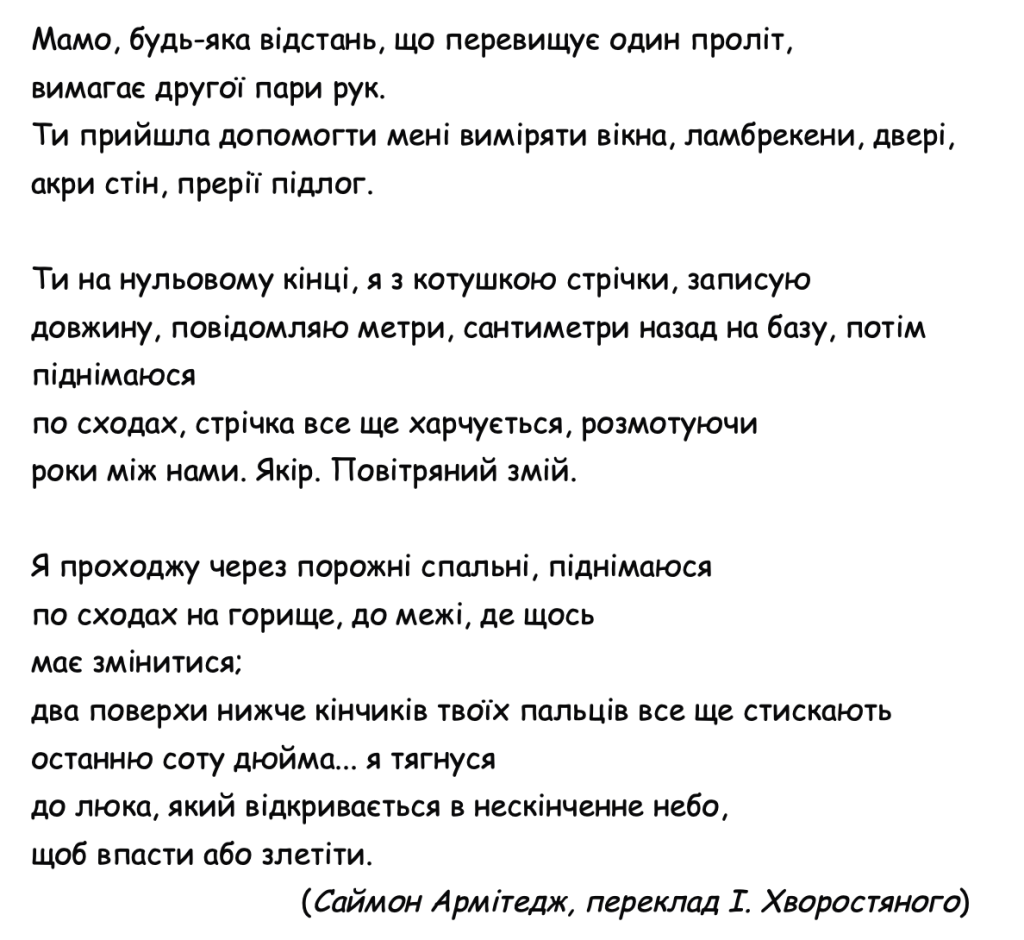 С. Армітедж «Мамо, будь-яка відстань…»;