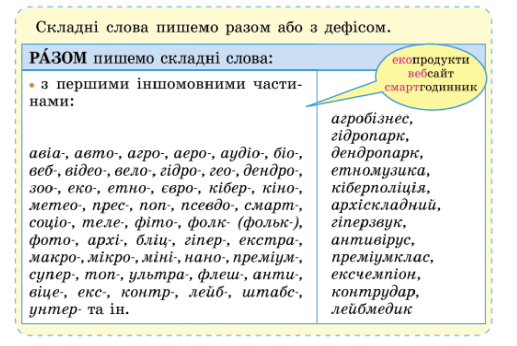 У медіа часто вживають складні слова й абревіатури. Пригадайте правопис складних слів і правила узгодження абревіатур.