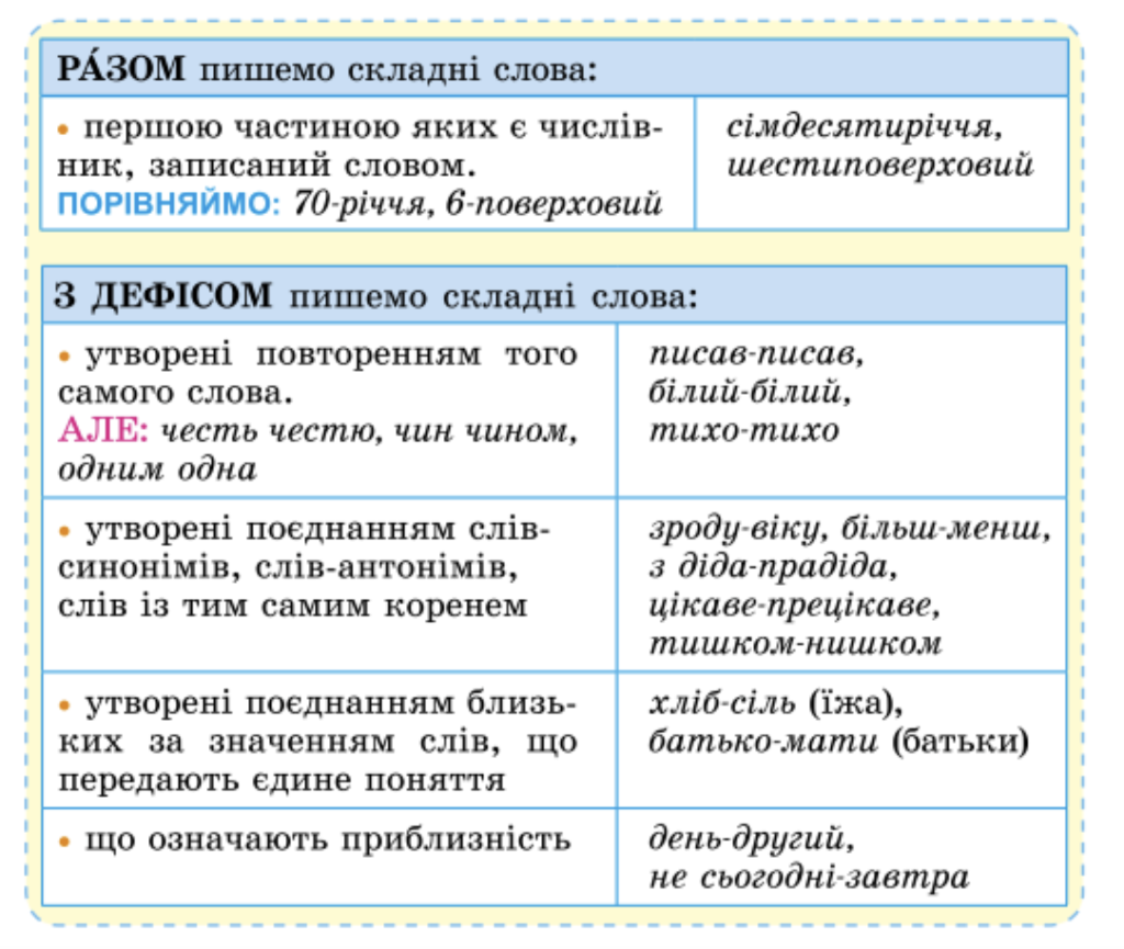 Джерело: Онатій А. В., Ткачук Т. П. Українська мова : підручник для 6 кл. закладів загальн. середн. освіти / А. В. Онатій, Т. П. Ткачук. — Тернопіль : Навчальна книга — Богдан, 2023. – С. 109.