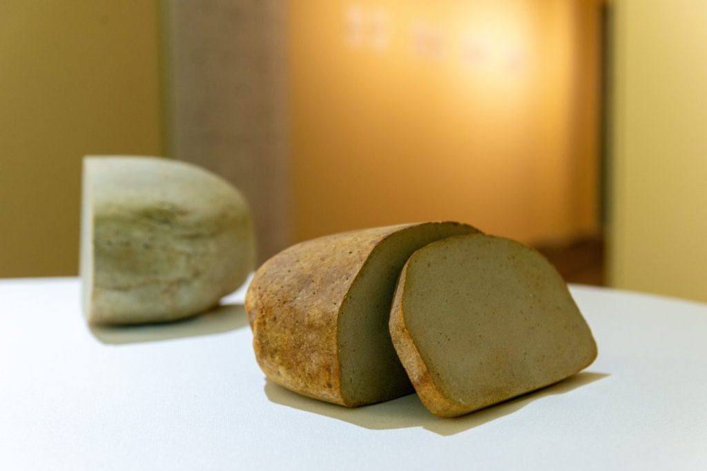 Роздивися проєкт Жанни Кадирової «Паляниця» 2022 року, зроблений із річкового каміння. Поміркуй, що ця робота може символізувати?
