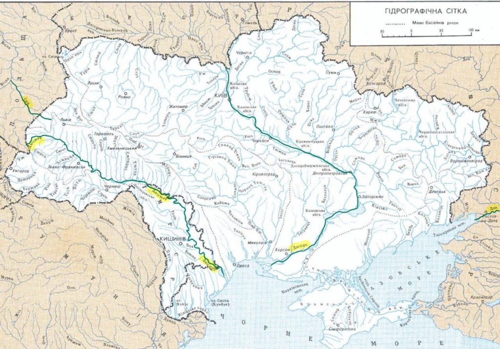 Подивися на карту та спробуй знайти кожну зі згаданих чотирьох річок.