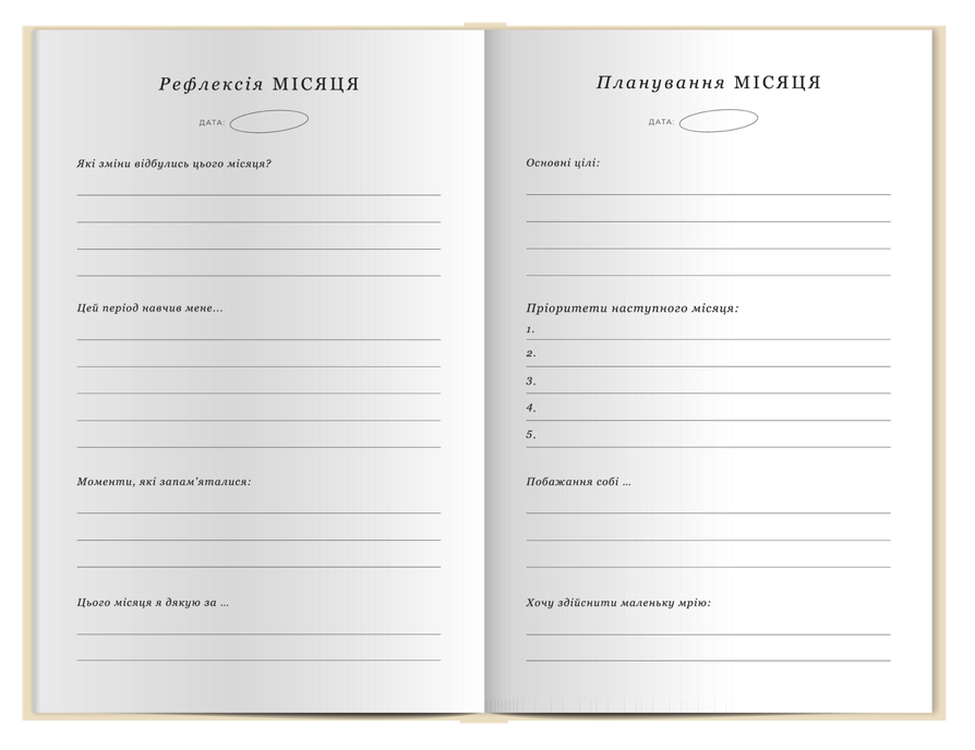 Б) Щоденник саморефлексії — щоденник, який допоможе відрефлексувати день, осмислити, що в ньому відбулося.
